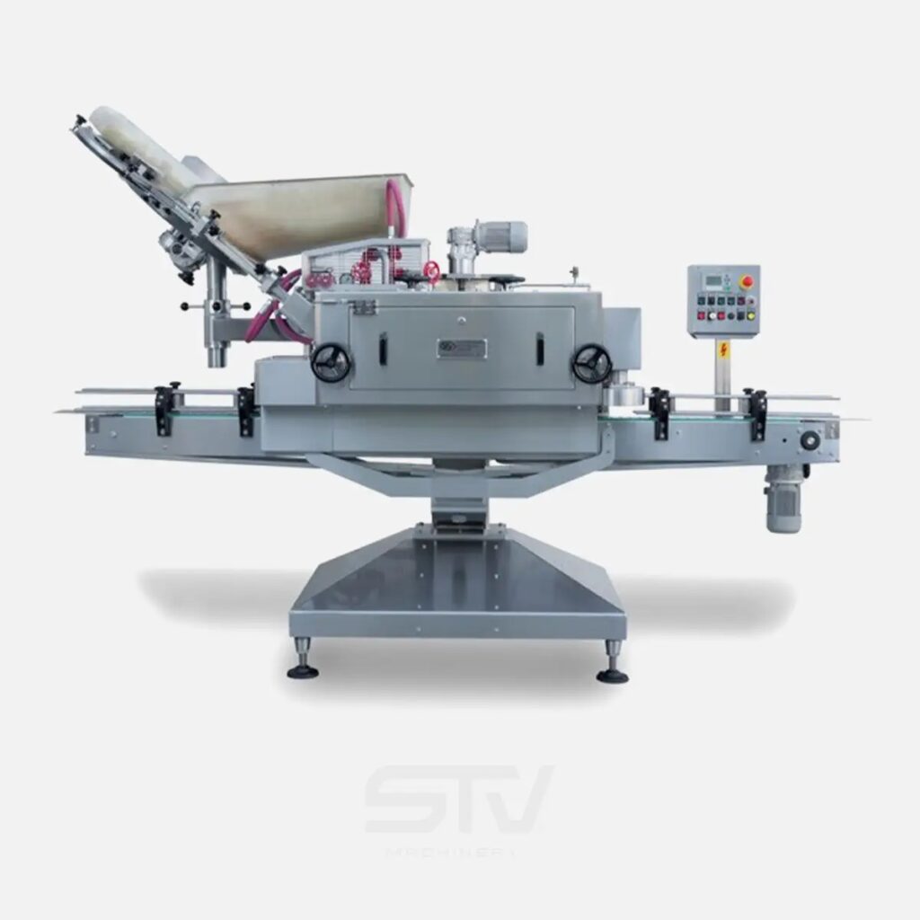 Machine suitable for closing glass containers (jars and bottles) by means of TWIST-OFF CAPS.